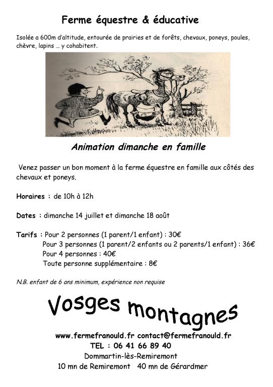 C'est bientôt la fin du printemps, la fin des cours, les grandes vacances et à tout cela s'ajoute les nombreuses kermesses auxquelles l'association Le Crins de Franould propose des baptêmes à poneys. Le 30 mai nous sommes à l'Accueil à Remiremont et le 9 juin à la kermesse de l'école de Rupt-sur-Moselle, nous irons le 15 juin à la kermesse de l'école du Revillon et le 30 juin à celle de l'école de Rochession.