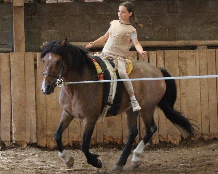 Nous disposons d'une cavalerie adaptée à cette discipline qui est encadrée par Irène Kaag dont c'est la spécialité, et par Marijke Toussaint voltigeuse participant aux championnats de France.